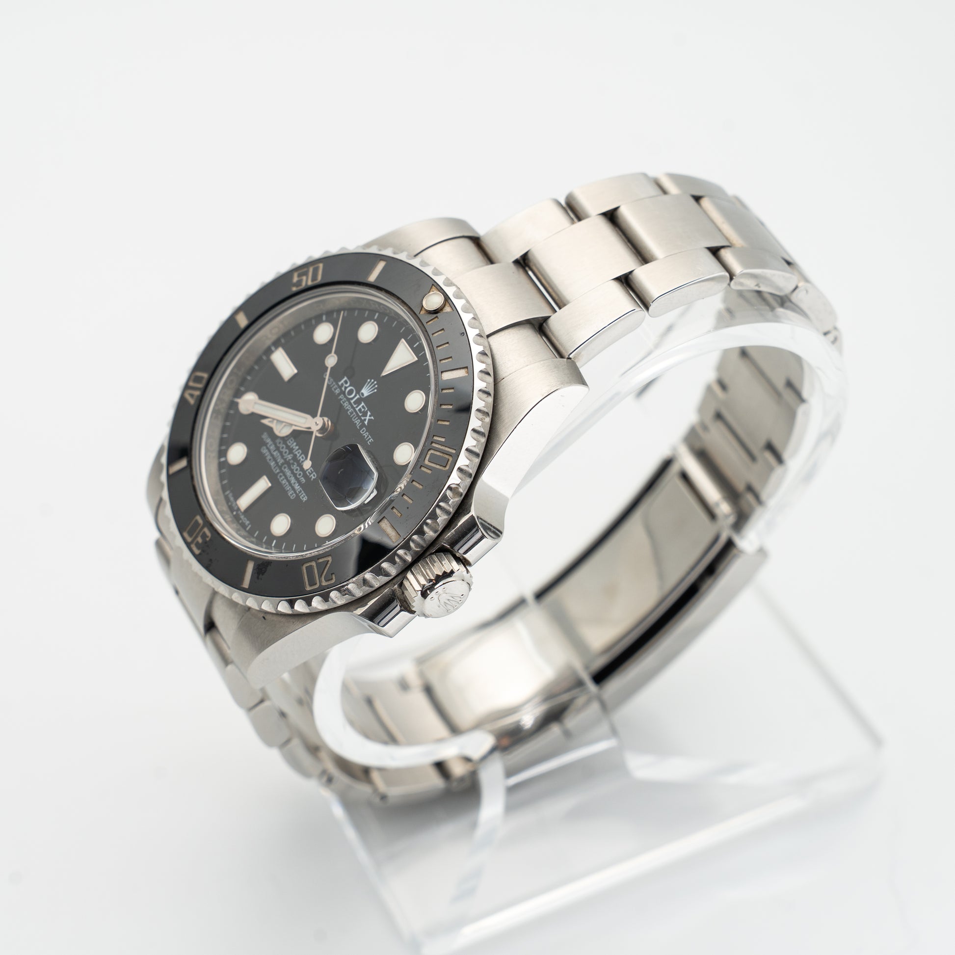This is a Rolex Submariner Date Ref. 116610LN, circa 2016. This modern classic from Rolex features a 40mm Oystersteel case, black ceramic bezel, and matching black dial with Chromalight lume. Powered by the robust Rolex Caliber 3135 automatic movement, this model is known for its blend of durability, precision, and iconic design. It comes with both original box and papers and is in overall excellent condition, making it a strong choice for collectors and enthusiasts alike.