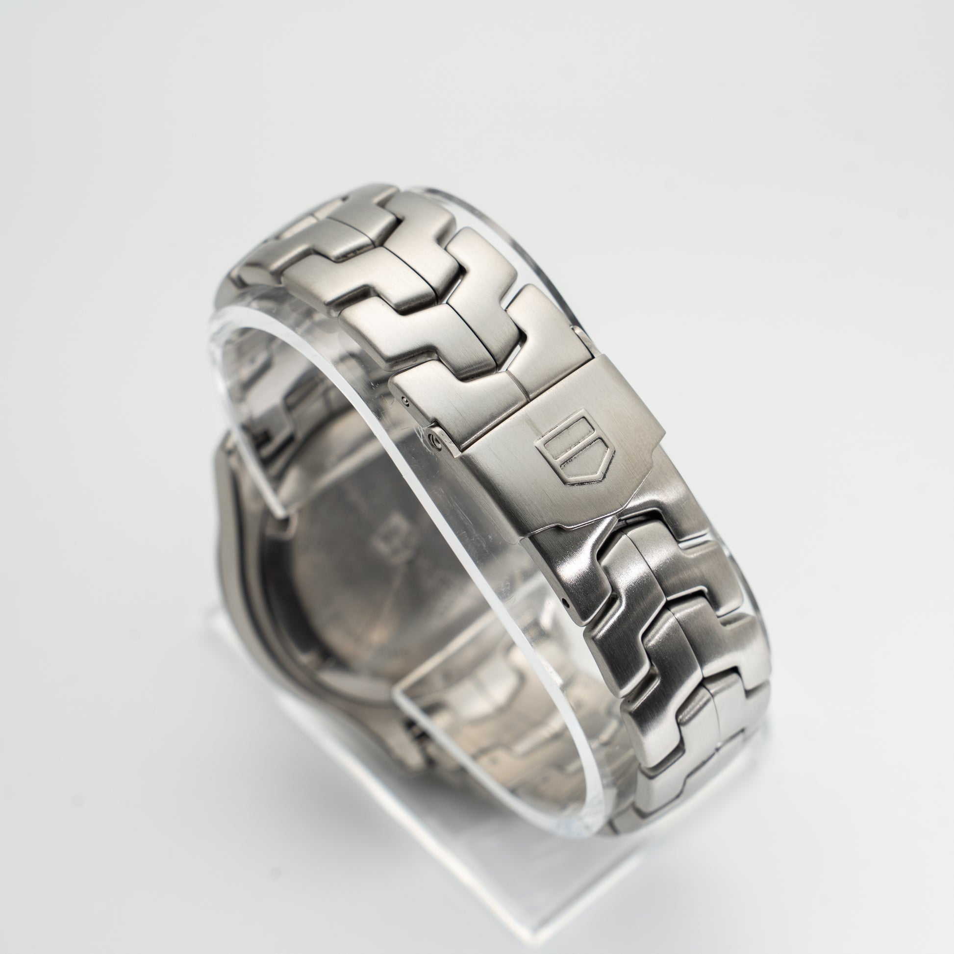 This is a Tag Heuer Link Calibre S Chronograph Ref. CJF7111, a forward-thinking hybrid chronograph from Tag’s innovative Calibre S line. Featuring a 42mm stainless steel case, silver dial with dual arc chronograph registers, and the iconic Link bracelet, it blends classic luxury design with cutting-edge analog-quartz hybrid functionality. A perfect choice for those who appreciate precision and uniqueness in a sporty yet refined package. This example is in 8/10 condition, showing light wear consistent with use. No box or papers are included.