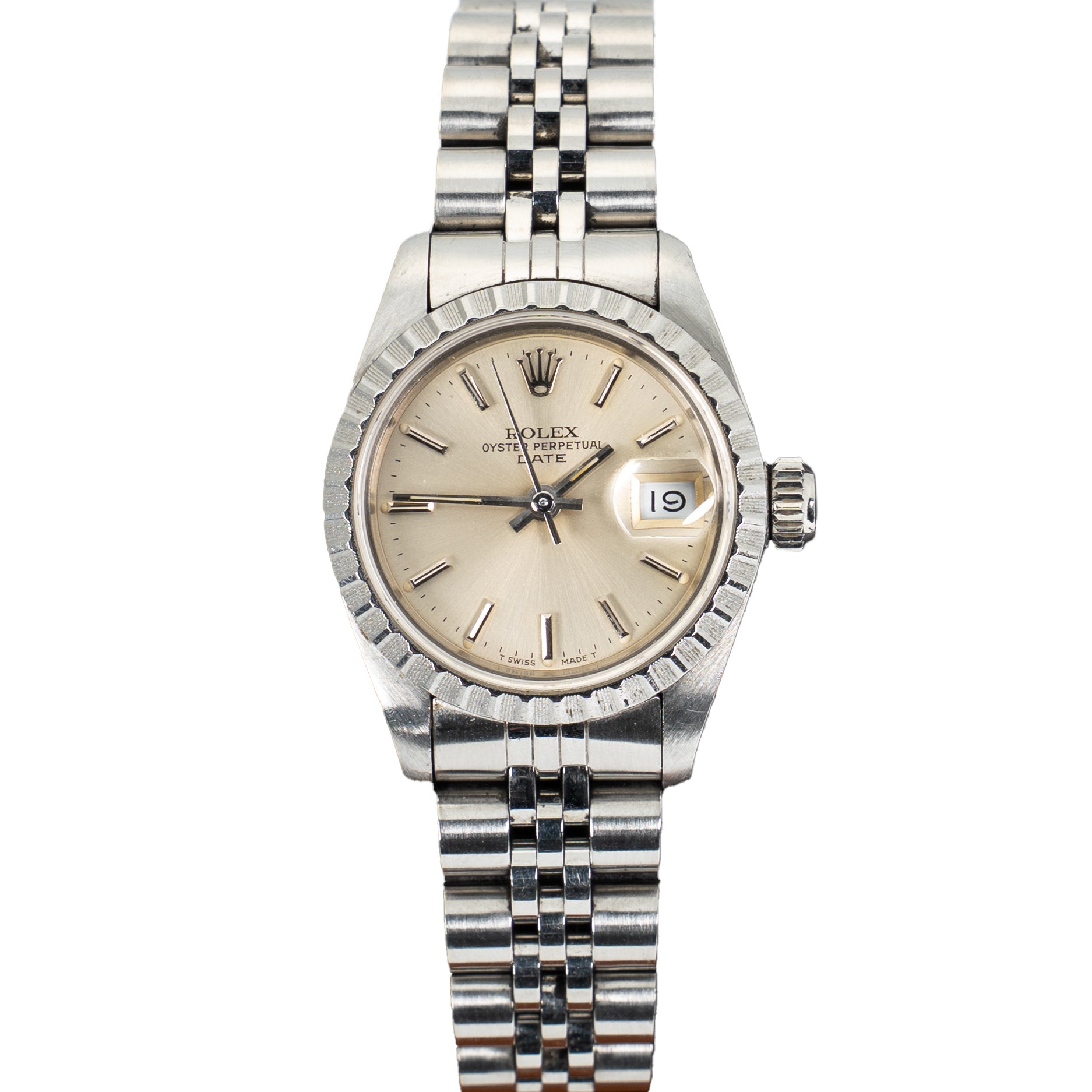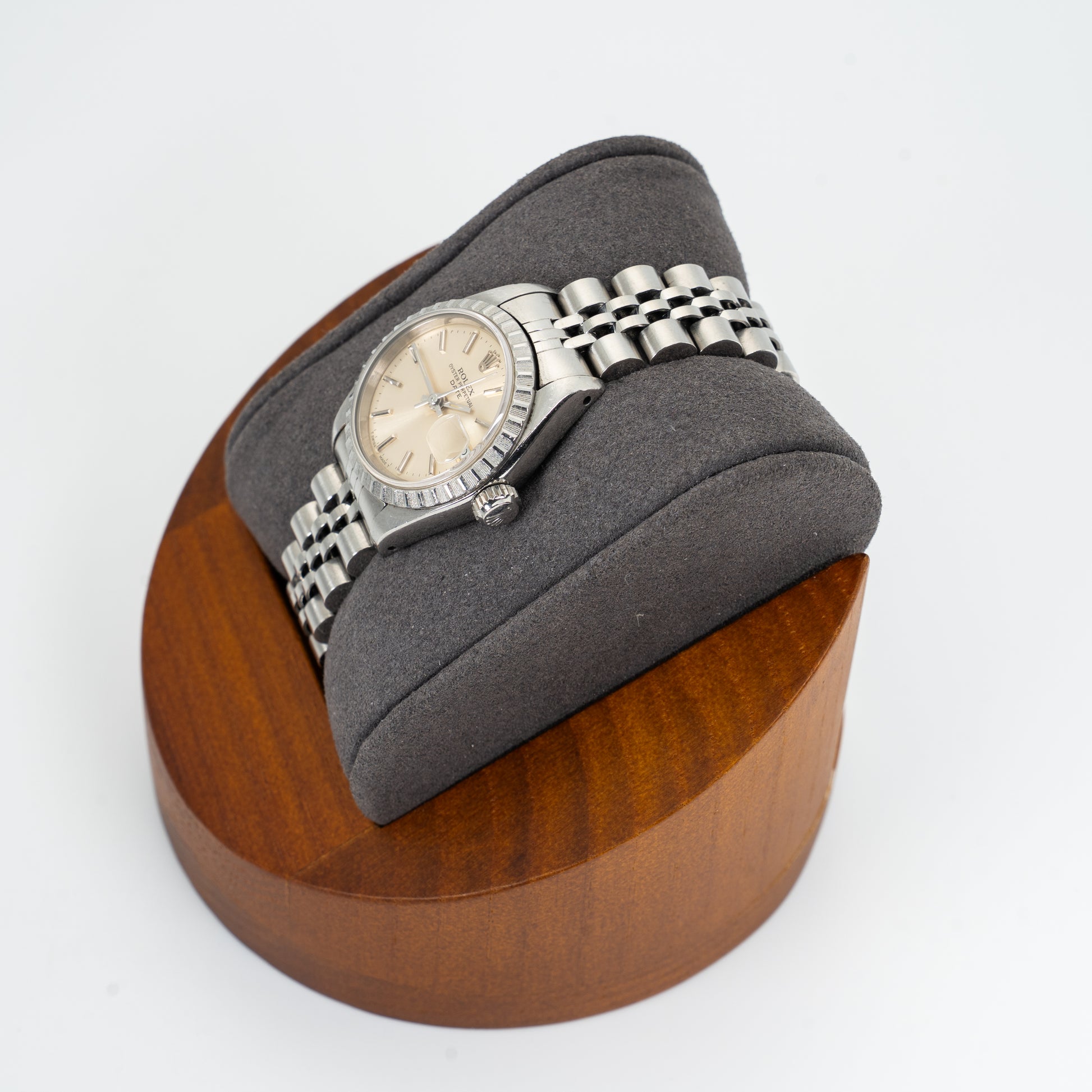 This is a Rolex Lady-Datejust Ref. 69240, circa 1989. A refined and versatile ladies’ timepiece, this model features a classic silver dial housed in a stainless steel case with a smooth bezel. Paired with the elegant Jubilee bracelet and powered by Rolex’s reliable automatic movement, it offers timeless styling suitable for both daily wear and special occasions.