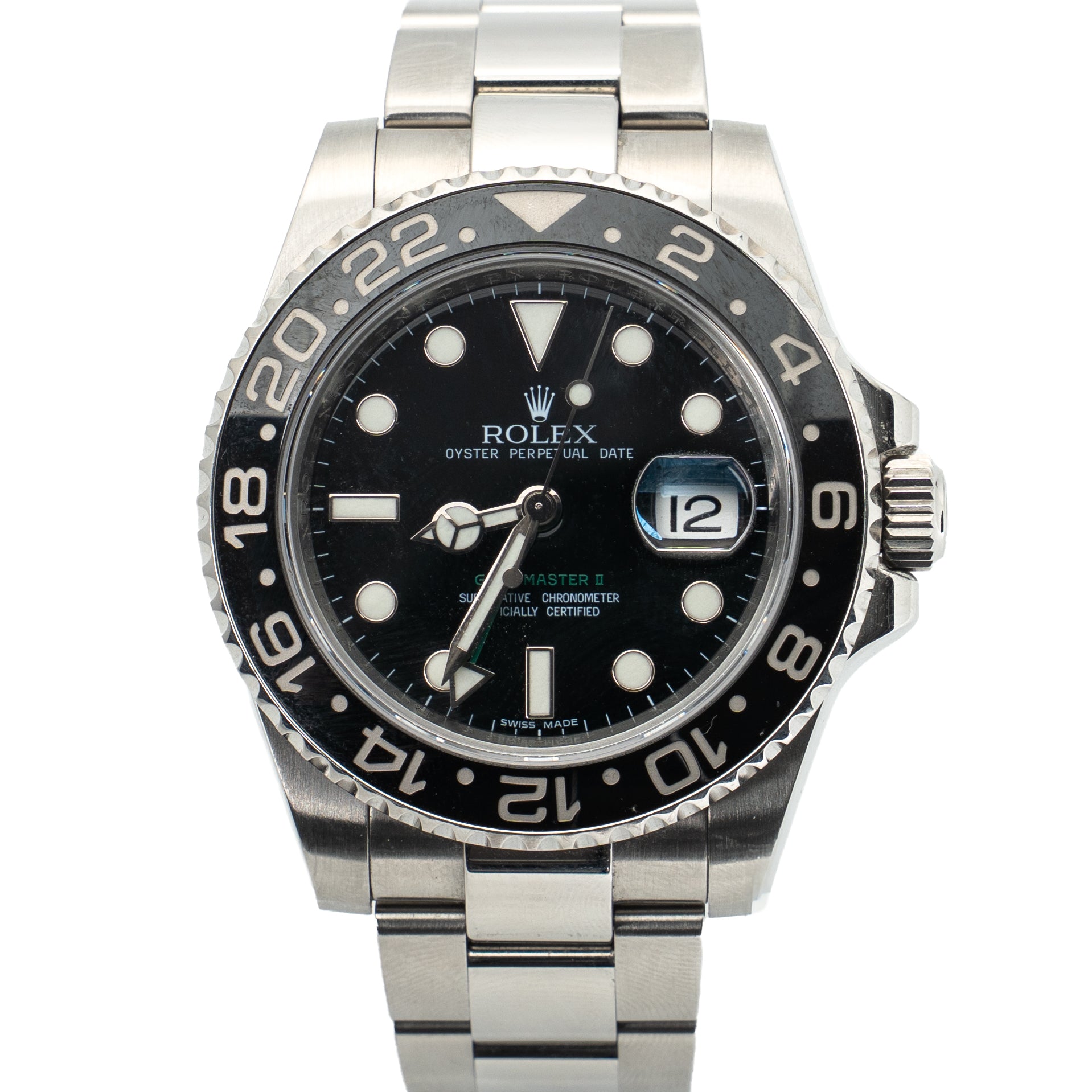 Dial: Black with green GMT hand and luminous markers